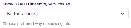 Show Dates/Timeslots/Services As: Here, you can choose the appearance of the proposed timeslots and services. They can be displayed either as “Buttons (Links)” or as “Text (Info)”: