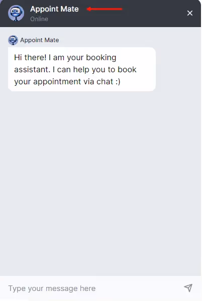 Chatbot Name: Here, you can choose a name for your Chatbot, such as “Bookie Bot,” “Appoint Mate,” “Meet Me Bot,” or any custom name you prefer. This selected name will be visible to users when they start a chat.