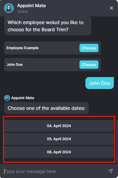 Enable Chatbot on the Booking Website: Activating this option integrates the Chatbot into your Quickly Booked App booking form, providing your clients with the convenience of scheduling appointments through the Chatbot interface.