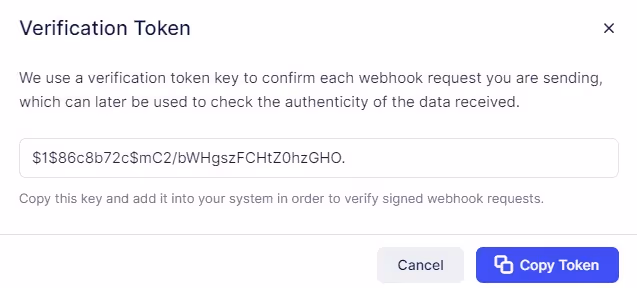 When setting up your Webhooks in Quickly Booked App, you have the option to utilize a ‘Verification Token‘. Clicking on this button (next to the “Create Webhook” button) will prompt a pop-up window where you can view and copy your verification token.