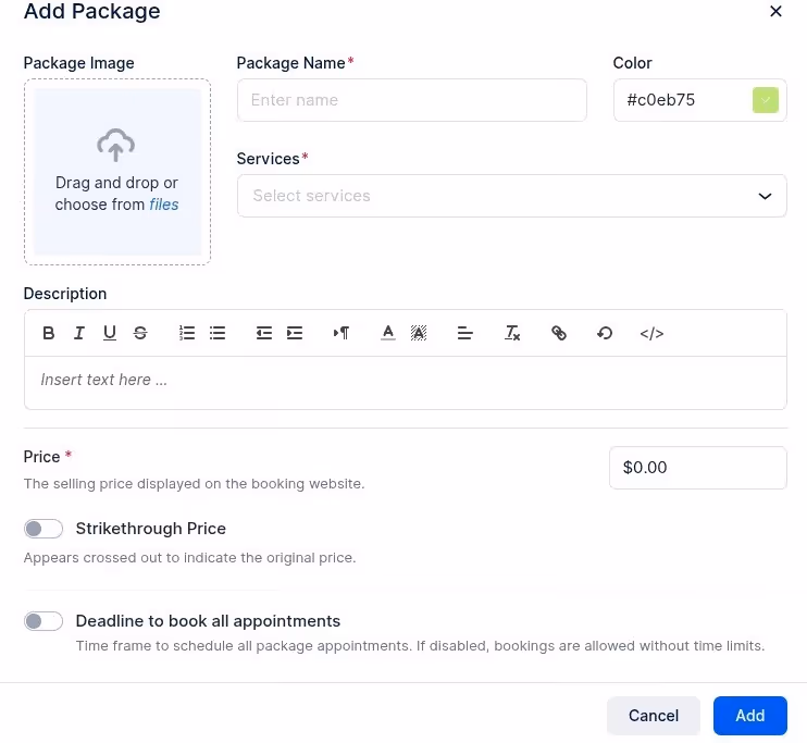 You can create packages from the Services section of your QuicklyBooked dashboard.