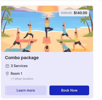 Once saved, the package appears on your booking page and is automatically linked to client profiles when purchased.